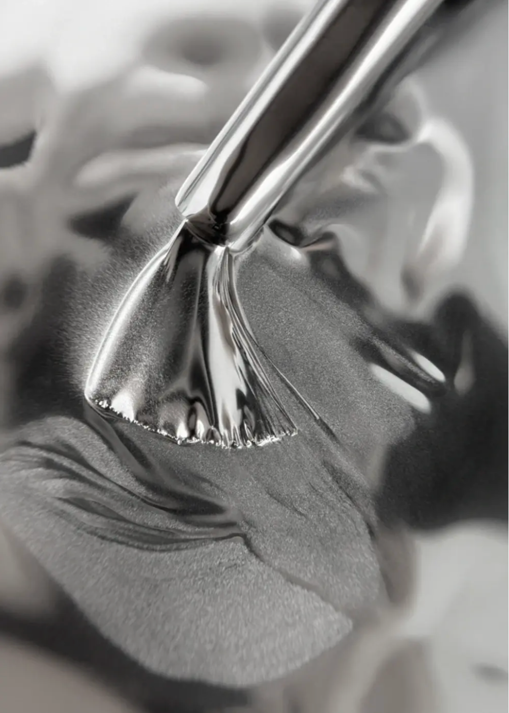 Lerne Decade kennen — dein neuer Favorit für geschmolzen-metallische Maniküren. Dieser Liquid-Metal-Nagellack verwandelt sich nach dem Aushärten von einem hochglänzenden Gelpolish in ein veredeltes, gebürstetes Silber-Chrome. Erzielt elegante, raffinierte silberne Nageldesigns mit modernem Look und zeitloser Ausstrahlung. Das ist nicht einfach nur Chrome, sondern ein edler Gel-Farbton, der Chrome-Gelnägel auf ein neues Level hebt.